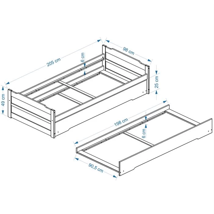 - Stellmaß: 98,5 x 48 x 205 cm (B x H x L)