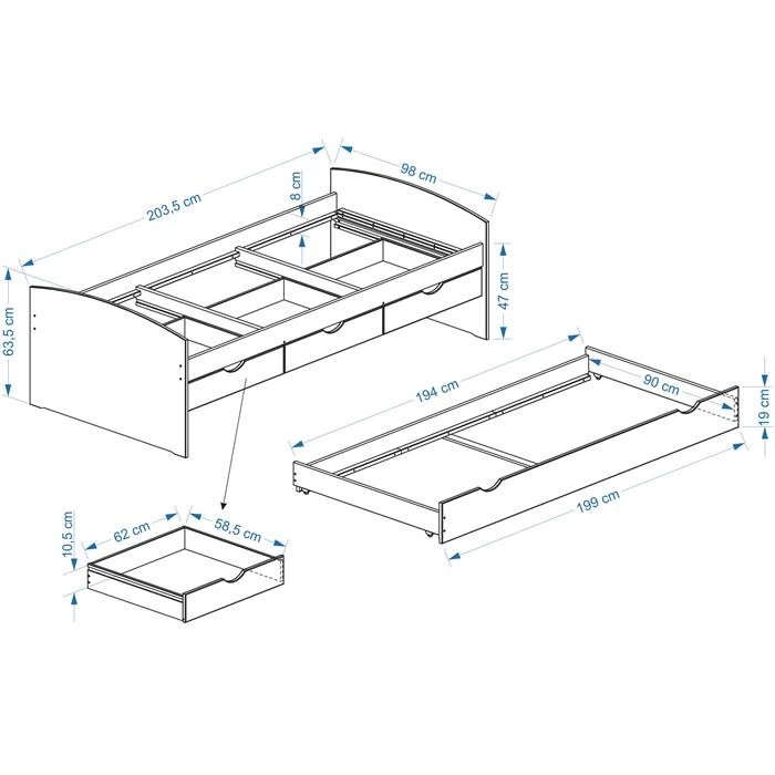 - Aufbaumaß: 98 x 63 x 205 cm (B x H x L)