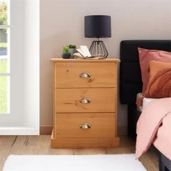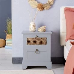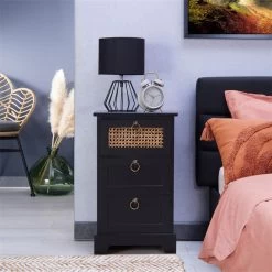 Nachttisch RAJA Mit 3 Schubladen Und Wiener Geflecht, Schwarz