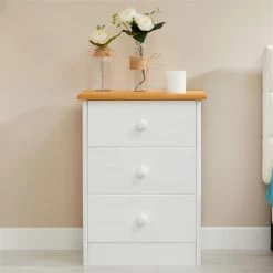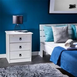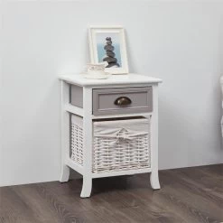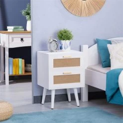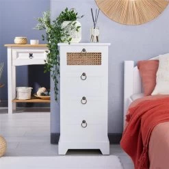 Nachttisch VANIKA Mit 4 Schubladen Und Wiener Geflecht, Weiß