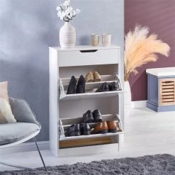 Schuhkipper BASIL Mit 2 Kipper Und 1 Schublade In Weiß, Kiefer Massiv