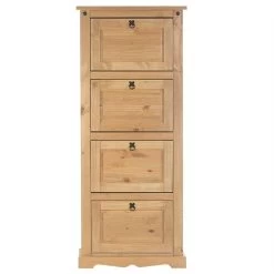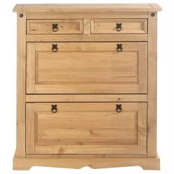 Schuhschrank TEQUILA, Kiefer Massiv, 2 Klappen Und Schubladen, Mexiko