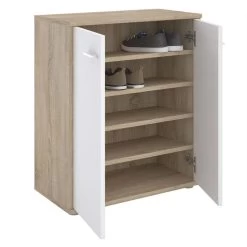 Schuhschrank TEQUILA, Kiefer Massiv Weiß/braun, Mit 2 Schubladen Und 8 Fächer, Mexiko
