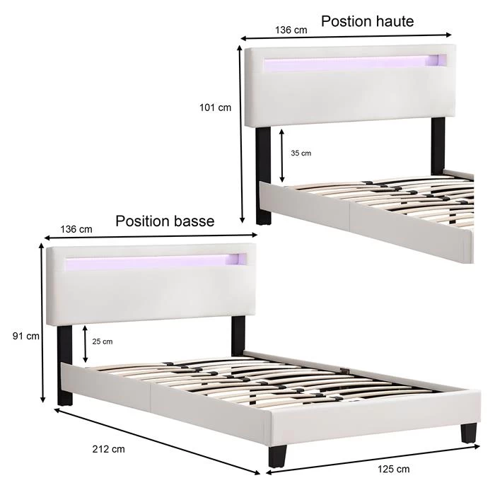 - Kopfteil verstellbar: Mindesthöhe 91 cm, mittlere Höhe 96 cm, maximale Höhe 101 cm