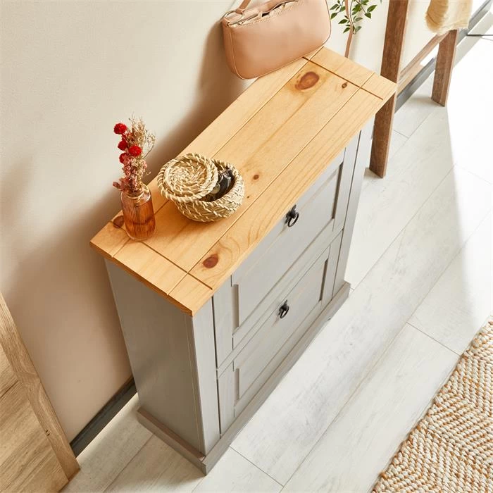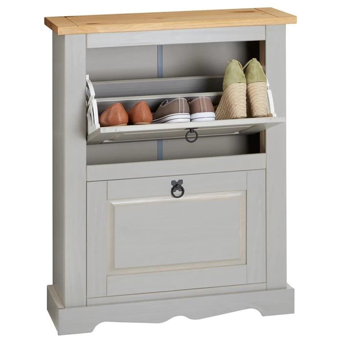 Schuhkipper BASIL Mit 2 Kipper Und 1 Schublade In Weiß, Kiefer Massiv