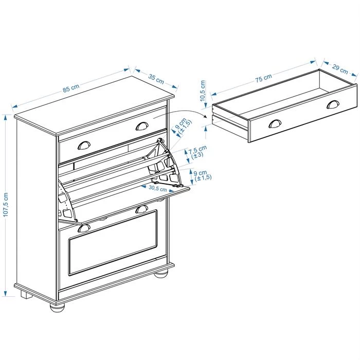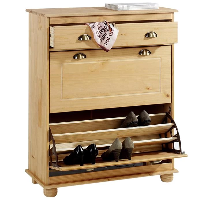 Schuhkipper BASIL Mit 2 Kipper Und 1 Schublade In Weiß, Kiefer Massiv